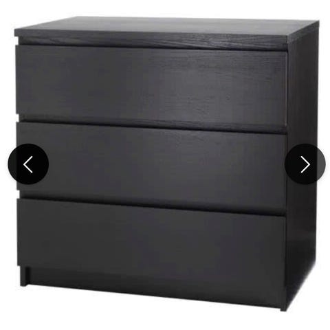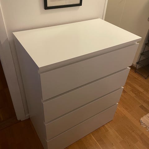 Byrå MALM 3 lådor, vitlaserad ekfaner