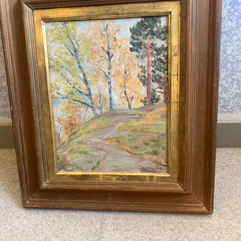 Vacker målning av Mats Nörle med fin guldram. Olja på pannå.