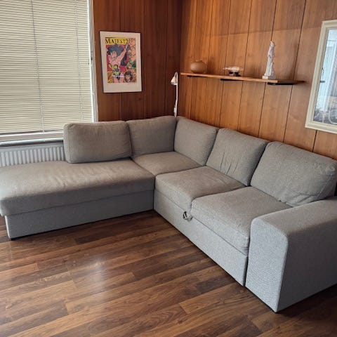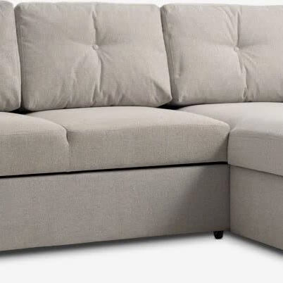 Hörnsoffa schäslong som kan fällas ut till bäddsoffa.