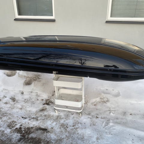 Thule takbox vit uthyres, även takräcken vid önskemål
