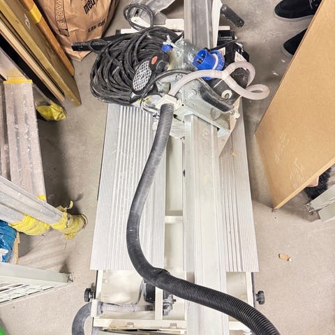 Raimondi Bolt kakelsåg med vattenkylning för kapning av kakel och klinker. Sågen har aluminiumbord med längsgående spår för stabil guidning av plattor. Utrustad med eldriven motorsläde, vattenkylning via slangsystem samt anslutningskabel. Avsedd för våtkapning för att minska damm och ge renare snitt i keramiska plattor och liknande material. Maskinen är lämplig för användning vid plattsättning, renovering och andra byggprojekt där noggrann kapning av plattor krävs.