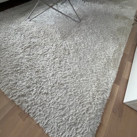 Jotex matta i rektangulär form. Mattan är ljus, i en naturvit ton, med diskret mönster i luggen. Passar exempelvis i sovrum, vardagsrum eller hall där en mjuk och neutral textil önskas på golvet.