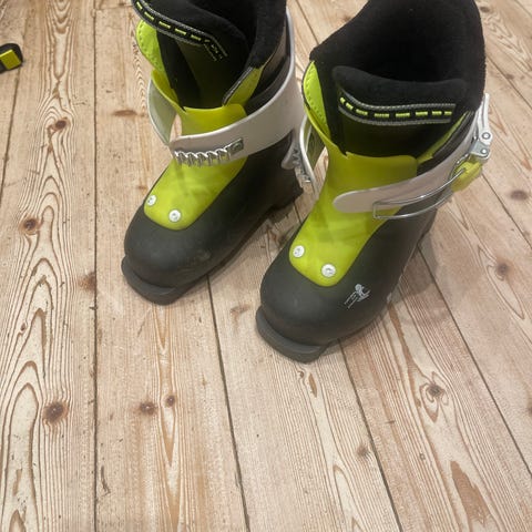 Nordica PCarv1 innermått 175 mm. Slalompjäxor för barn. Pjäxorna är vita med rosa detaljer och har ett justerbart spänne över skaftet.