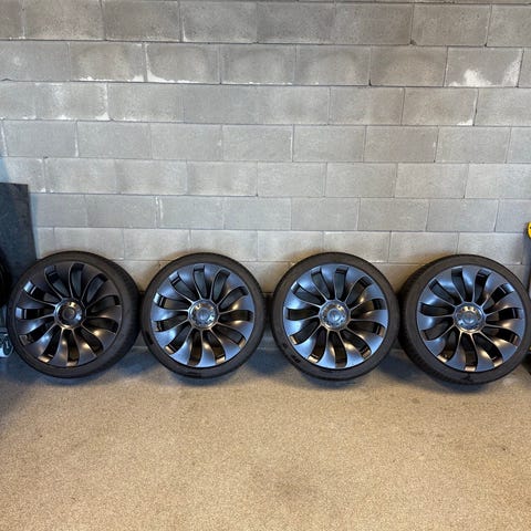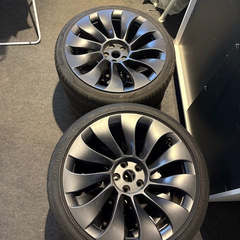 Säljer en komplett uppsättning fälgar med dubbdäck som passar perfekt till Tesla Model Y Performance. Jag har köpt ett nytt hjulset så jag säljer nu mitt gamla.
