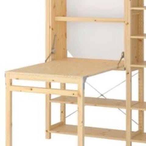 Säljer Ivar skrivbord (gamla modellen som fälls nedåt, 80×30/104×155 cm) samt skåp med skjut-dörrar. Täckskivorna skickas med också.
