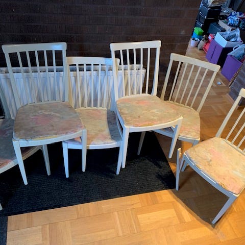 Ett äkta och karaktärsfullt bord med passande stolar i liknande färg och gott skick. Bordet har sin historia och utstrålar en charm som man helt enkelt inte hittar i nya möbler. Stolarna är i fint skick och passar fint ihop med bordets personlighet.