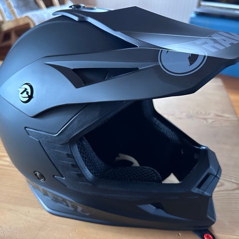 Monster Energy integralhjälm i svart med grön Monster-logga på sidorna. Hjälmen har heltäckande skal med fast hakparti och visiröppning framtill. Invändigt finns vadderad inredning och hakrem med spänne. Passar för användning där en integralhjälm med heltäckande skydd önskas.