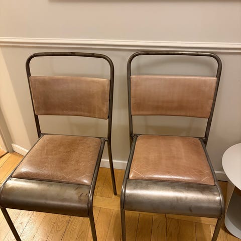 Specialbeställt matbord i industriell stil med bordsskivor i betong och underrede i stål. Robust och stabilt bord som ger ett tydligt uttryck i rummet. Bordsskivorna har några märken och fläckar.