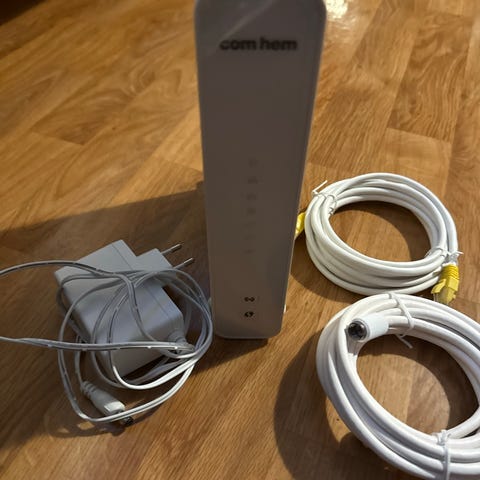 Netgear CG3100 modem. Trådbundet modem avsett för anslutning till kabelnät. Enheten har flera Ethernet-portar för anslutning av datorer eller andra nätverksenheter via nätverkskabel. Lämplig för användning som modem i hem- eller kontorsnätverk där kabelanslutning används för internetuppkoppling.