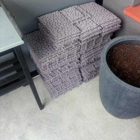 Säljer ett komplett parti med grå plasttrall från Rusta. Totalt 71 stycken plattor, vilket täcker drygt 6 kvadratmeter. Perfekt för att fräscha upp balkongen eller uteplatsen inför våren!