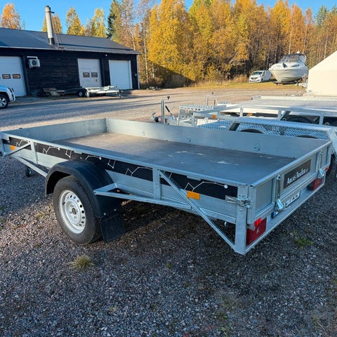 En liten smidig vagn med tipp. Totalvikt 1500kg med lastvikt på 066kg. Flakmått 361x190cm.