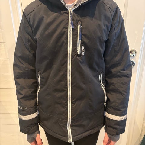 Jackan är typ skidjacka med midjebälte med resår och knappar , se bild Lite längre bak , dragsko i nederkant