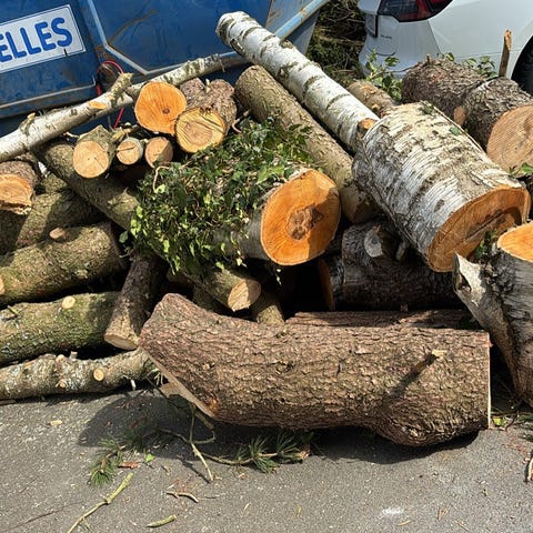 Hej, diverse träd, syren (hög effektivitet) ca 15-20 cm i diameter, al, mfl , främst 15-20 cm i diameter (även några större) finns att fälla gratis för nästa säsongs vedeldning. Grenar efter fällning tar man med sig. Om man vill slänga så finns Sysay 3 minuter bort.