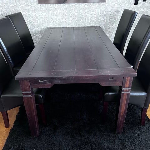Matbord (utfällbart) och 6 stolar.