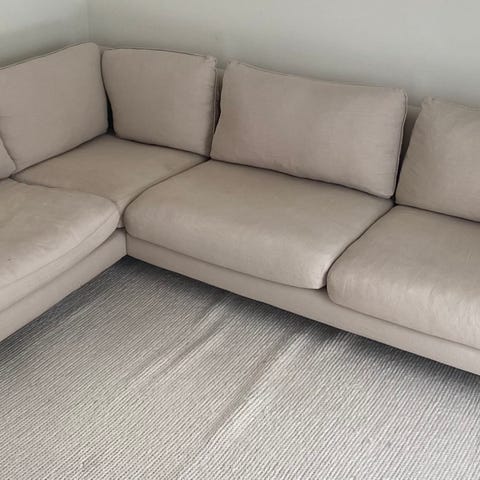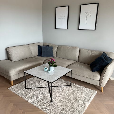 Madison 2-sits soffa med schäslong, tyg science mores light green.
