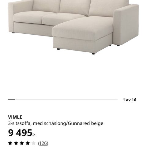3-sitssoffa Vimle med schäslong (förvaring i schäslong). Tyg Gunnared beige.