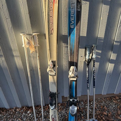 Snowco RX8 skidor med matchande pjäxor och stavar för barn. Alpina skidor med bindningar, pjäxor i plast med spännen och stavar i metall/plast. Utrustningen är avsedd för utförsåkning för barn. Färgkombination i huvudsak svart, röd och gul på pjäxorna samt flerfärgad design på skidorna.skidorna är 160cm långa.