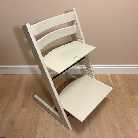 Svart Stokke Tripp Trapp stol ca 7 år gammal.
