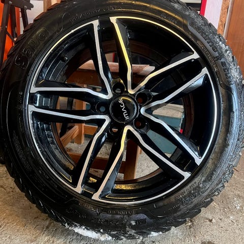 Mkt fina fälgar med dubbdäck som gått 2,5 säsonger. Satt på KIA Niro EV -23 som lämnades tillbaka igår.
