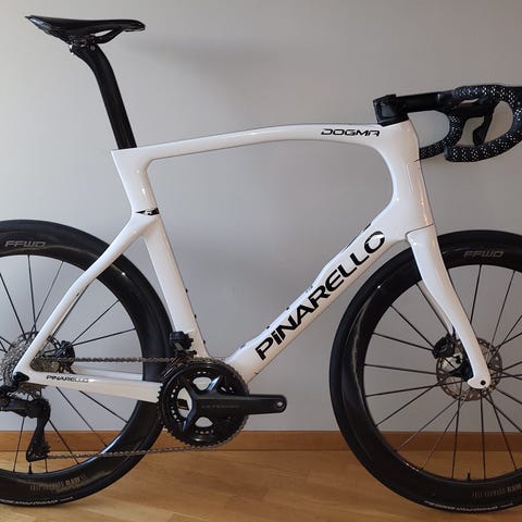 Dogma F8 är känd för sin styvhet, låga vikt och aerodynamiska egenskaper. En cykel som fortfarande står sig mycket starkt både för träning och tävling.