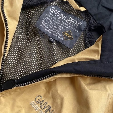 Galvin Green Gore‑Tex Paclite‑jacka i svart/mörkgrått. Lätt, vattentät och vindtät skaljacka. Mycket gott skick. Nypris ca 3 500–4 500 kr.
