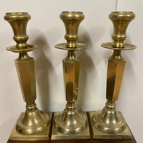 Hexagonformad ljusstake i klart massivt glas. Ljusstaken har en rund fördjupning i mitten som passar för blockljus eller större värmeljus.