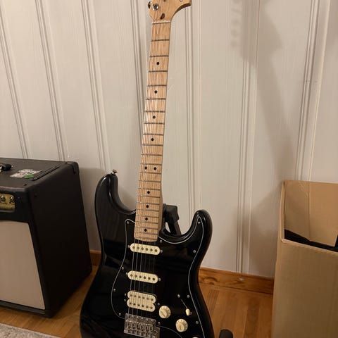 Fender Stratocaster performer. Kroppen har klassisk Stratocaster-form med 1 humbucker och 2 singelcoils. Det går att splittra humbuckern genom att dra ut ena tonkontrollen. Gitarren har utrustats med Fender locking tuners. Original tuners finns kvar och kan skickas med gitarren. Gitarren har ngt märke efter användning men är i bra skick. Skickas inte. Finns i Örebro.