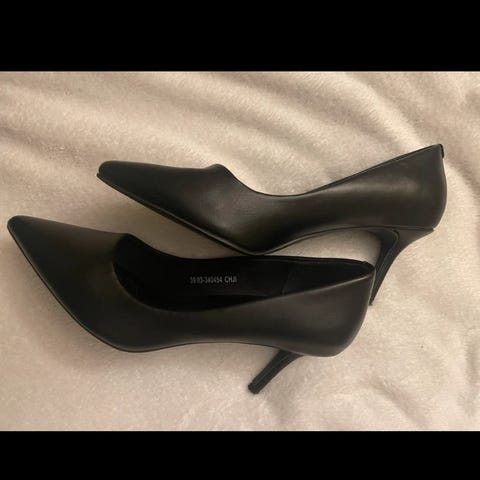 Pace klackskor INTE PUMA i storlek 38. Skorna är svarta med sluten tå och medelhög klack. Passar exempelvis till vardag eller fest. Materialet ser ut att vara slätt syntet- eller läderliknande material baserat på bilderna. Klassisk modell som fungerar till många olika outfits.