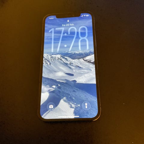 Apple iPhone 12 Pro mobiltelefon med 128 GB internminne. Modellen har blå baksida och platt skärm på framsidan. Utrustad med trippelkamera på baksidan och Face ID på framsidan. Lämplig för vardagsanvändning, surf, appar, foto och video. Stöd för trådlös laddning och användning av eSIM/nano-SIM beroende på operatörens stöd.