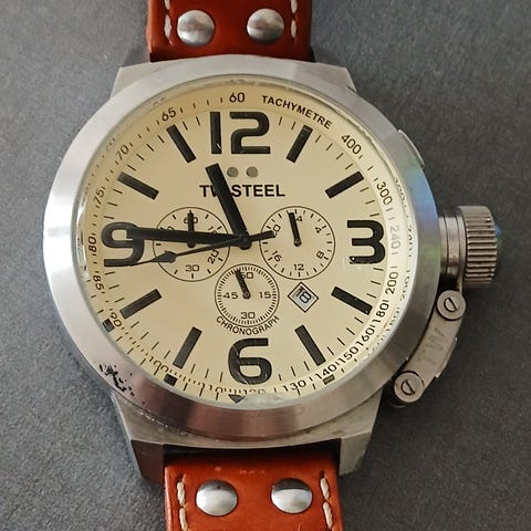 AS World Time Quartz Chronograph – en klocka som togs fram som profil-/presentklocka för Scandinavian Airlines. Behov av batteribyte, skada på glaset