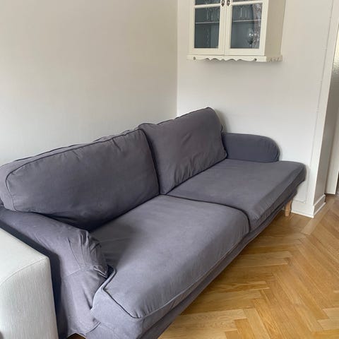 Säljer min blåa IKEA Söderhamn 3-sitssoffa. Den är i okej skick (använd men hel). Ingen lukt, inga husdjur, rökfritt hem. Freshly and recently cleaned!
