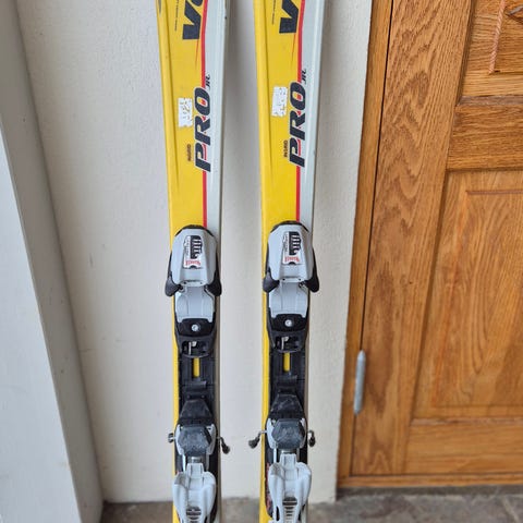Fint skick och lite använda, blå skidor 127 cm och gula är 140 cm.