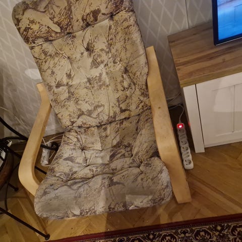 Säljer min älskade fåtölj pga flytt till mindre lägenhet! Inköpt från Blocket för ca 3 år sedan, från ett hem med katt. (Den katten har också klöst på ena sidan, se bild 2.) I min ägo har den varken varit utsatt för djur eller barn.
