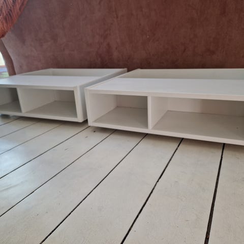 IKEA möbelben i trä. Fyrkantiga ben med metallfästen upptill för montering i möbel. Passar exempelvis till Ikea säng