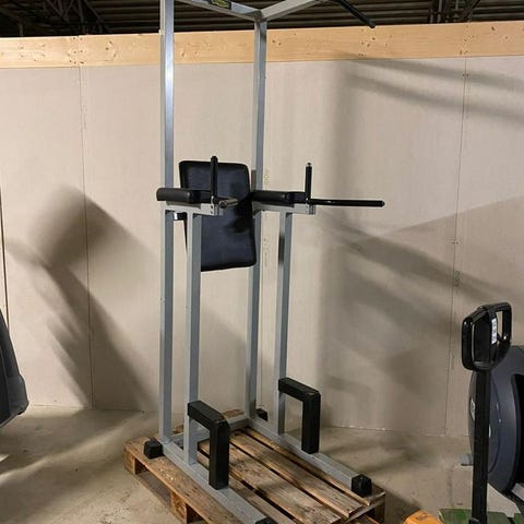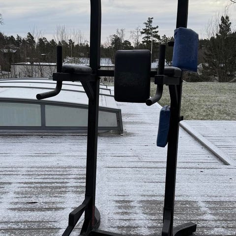 Perfekt för hemmaträning. Robust konstruktion i metall med handtag för både chins och dips. Använd men fullt fungerande.