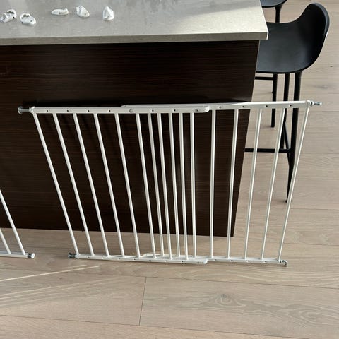 Babydan grind i fint skick. Går att anpassa bredd. Stadig. Funkar bra att anpassa till trätrappa som vi gjort. Bruksanvisning och alla originalfästen, skruvar etc ingår.