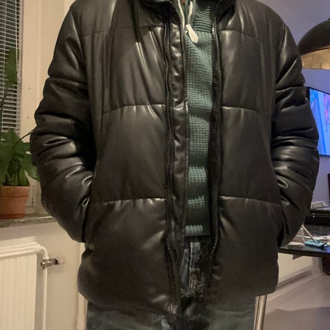 Den är använd, så skavanker finns. T.ex hål i höger ficka, upphängaren trasig (se bild).