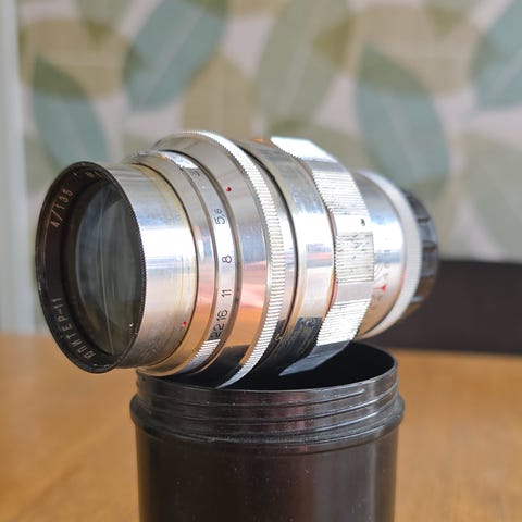 Nikon kamerateleobjektiv i svart utförande. Objektivet är av längre modell, lämpligt för telefotoanvändning såsom natur- och sportfoto. Passar Nikon-kameror med kompatibelt objektivfäste. Ytterskal i metall och plast med fokusring och inställningsring för bländare eller zoom, beroende på modell. Objektivet har stativfäste och är avsett för fotografering på längre avstånd.
