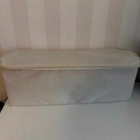 & Other Stories smyckesetui i ljust material med dragkedja runtom. Etuiet är rektangulärt och öppnas som en bok. Insidan har utskurna fack anpassade för att förvara och skydda smycken, till exempel armband eller klockor, under förvaring eller resa.