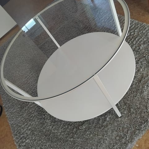 Soffbord, rund, glas, metal, begagnad, rullar, 300 kr eller högstbud , leverans i trakten efter överenskommelse möjlight.