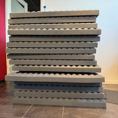 Akustikpaneler från IG Acoustics. 2 st, båda har synligt slitage, naggade kanter och nån spik behövs i ett hörn. Inget som är omöjligt att fixa. Nypris är drygt 1000kr / st.