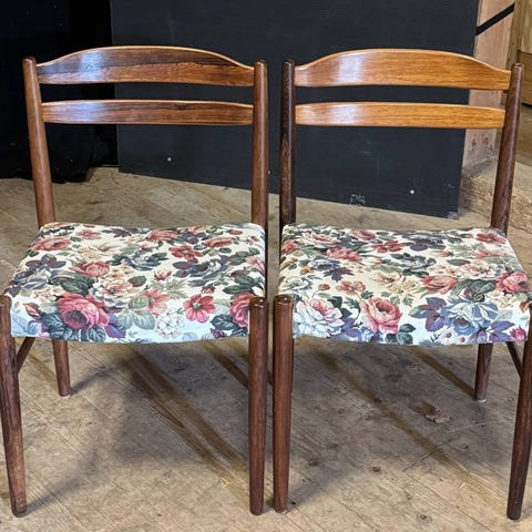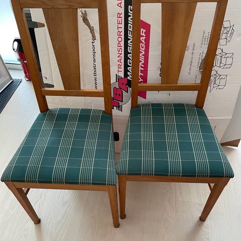 4 stolar i massiv furu med klädd sits. 1970-tal.