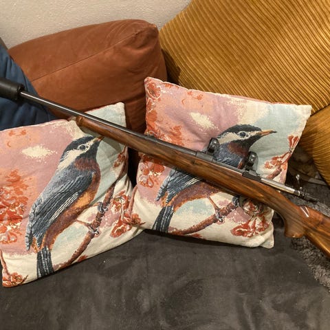 Ett fantastiskt bygge på en BRNO ZG47 låda. Tyrefors har gjort allt metallarbete som håller världsklass (Borderpipa). Den utsökta stocken kommer från Johnny Boberg och Farsan har pysslat ihop allt. Den har en generös pipprofil som är H&H storviltsprofil. Tack vare tyngden i bössan så är den väldigt skön att skjuta med. EN RIKTIG STORVILTSTUDSARE. Quick release montage med en Leupold European 1,25-4. Det är min fars gamla bössa och den har bara stått, är i princip oanvänd förutom lådan givetvis, ihopsatt 2013-2014 skulle jag tro. Vapnet kräver licens
