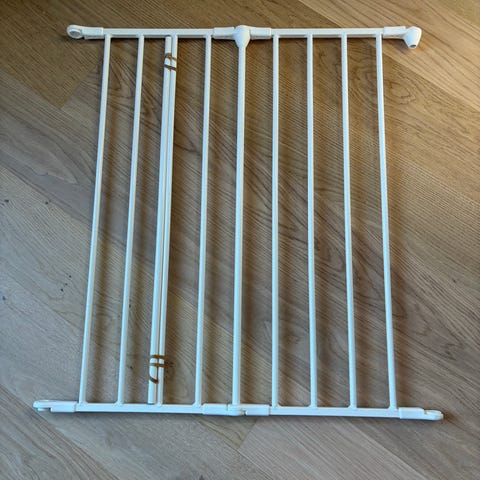 Säljer två stycken BabyDan Asta säkerhetsgrind i vit metall. 73,5-86,5 cm bredd. Tryckmonterad grind som kan användas i dörröppningar eller vid trappor. Grinden har öppningsbar sektion och vertikala spjälor. Levereras med tillhörande fästen och skruvar enligt bilderna. Kan förlängas ytterligare för bredare öppningar.