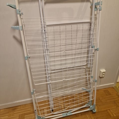 Minky utdragbar tvättlina med en total längd på 30 meter. Väggmonterad enhet i grå plast med två separata linor som kan dras ut och fästas med medföljande krokar. Avsedd för torkning av tvätt inomhus eller utomhus där fast torkställning saknas eller där man vill spara utrymme när linan inte används.