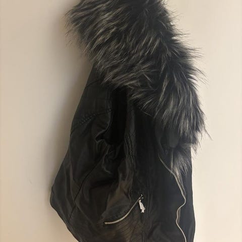 Längre svart läderjacka av märket Jofama i mycket fint skick, sparsamt använd. Dragkedja plus knappar framtill. Två innerfickor, bröstficka med dragkedja, två större fickor med lock plus knapp nedtill samt tillhörande öppna fickor utanpå dessa. Fodrad insida. Priset går att diskutera.