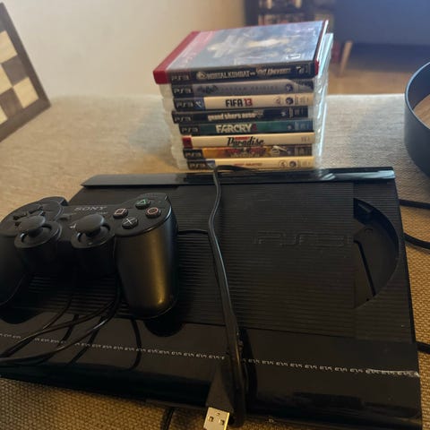 Sony Playstation 3 spelkonsol svart med handkontroll och spel