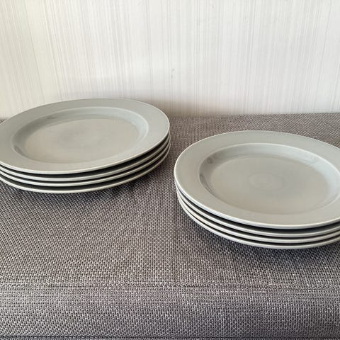 9 assietter varav 8 gröna och en blå