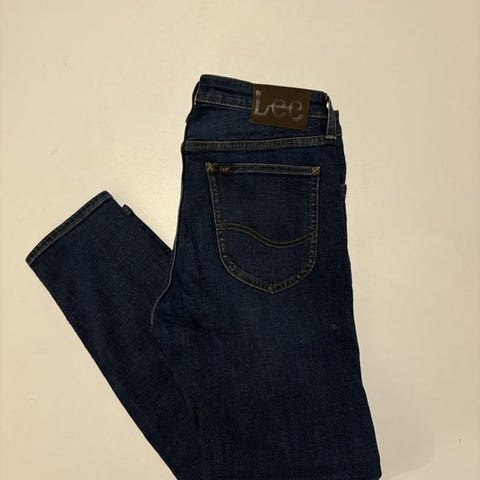Lee jeans för herr i blå denim. Byxorna har midjestorlek W32 och är i storlek M. Klassisk femficksmodell med dragkedjegylf och Lee-läderpatch bak i linningen. Passar som vardagsjeans eller fritidsbyxa.