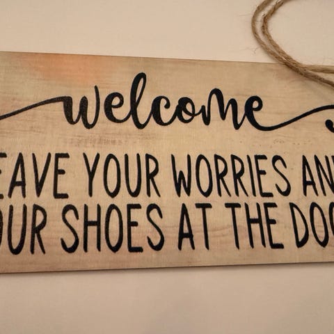 väggskylt "Beware of Dog" med gul bakgrund och röd tecknad hund. Skylten har tryckt texten "Beware of Dog" och ett illustrerat motiv av en hund med halsband. Passar som dekorativ skylt inomhus eller i skyddade utomhusmiljöer, till exempel i hall, garage eller vid entré. Monteras på vägg eller dörr med lämplig upphängning efter behov.